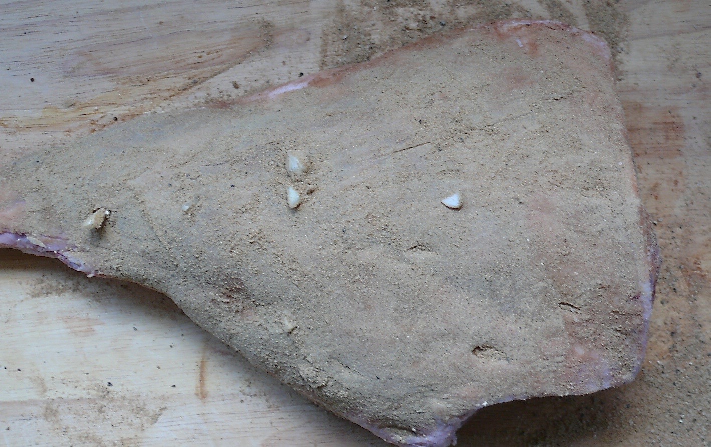 • Make incisions in the meat and inset slices of garlic into the cuts.
