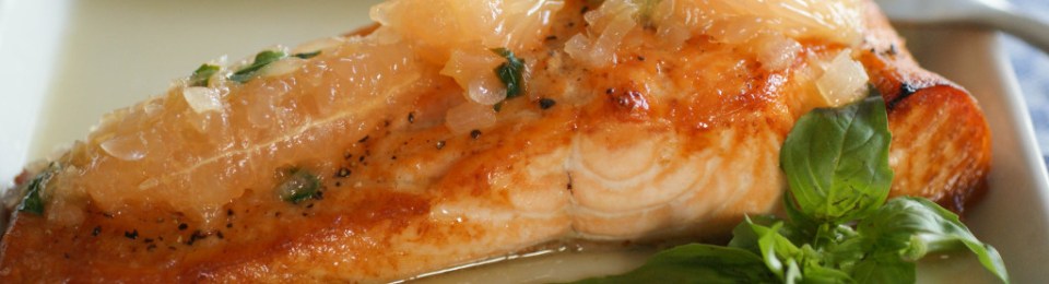 It was pretty awesome to find Swiss Paleo’s recipe – Roasted Salmon with Grapefruit Basil Sauce.