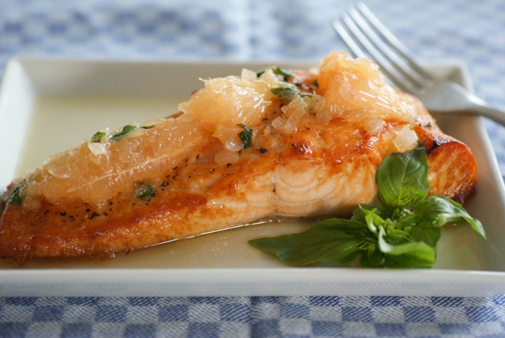 It was pretty awesome to find Swiss Paleo’s recipe – Roasted Salmon with Grapefruit Basil Sauce.